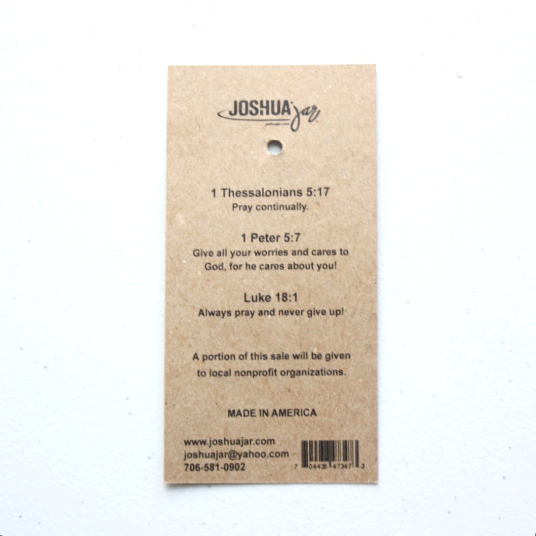 Keep this Prayer Rock with you to remind you to pray and that that God is with you throughout the day. Attach it to your key ring or bookbag or carry it in your pocket. This Prayer Rock can encourage you to pray for a need as well as prayers of gratitude. When you feel the texture of the rock, let it remind you that life can be a little smoother when you pray.
