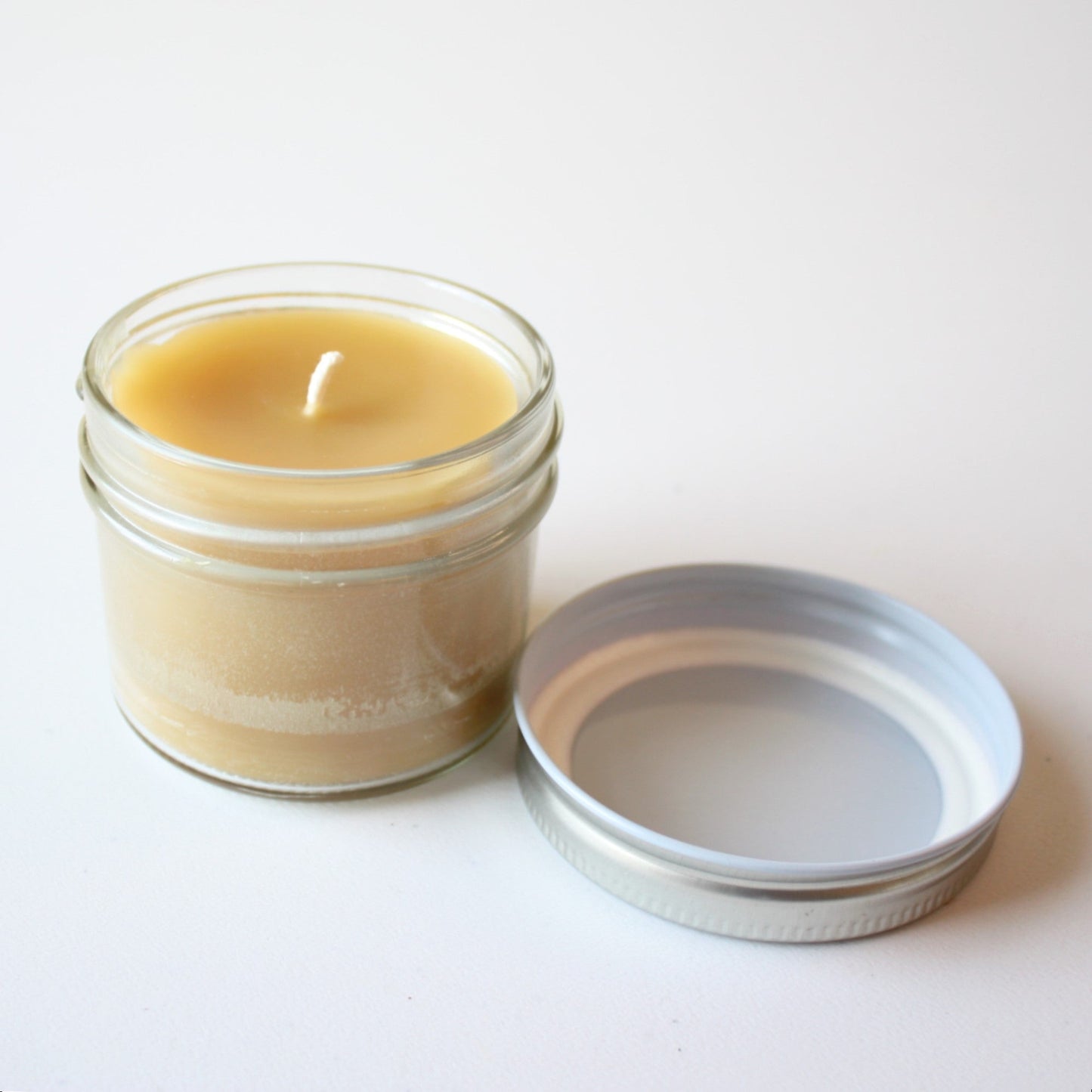 This handcrafted 100% Beeswax Jar Candle is proudly made in the USA by skilled artisans. Experience the gentle, toxin-free glow of pure beeswax hand poured in a reusable mason jar that enhances any space. Illuminate your surroundings with nature's beauty and craftsmanship in one, and choose our Beeswax Jar Candle for an eco-friendly, artisanal touch.