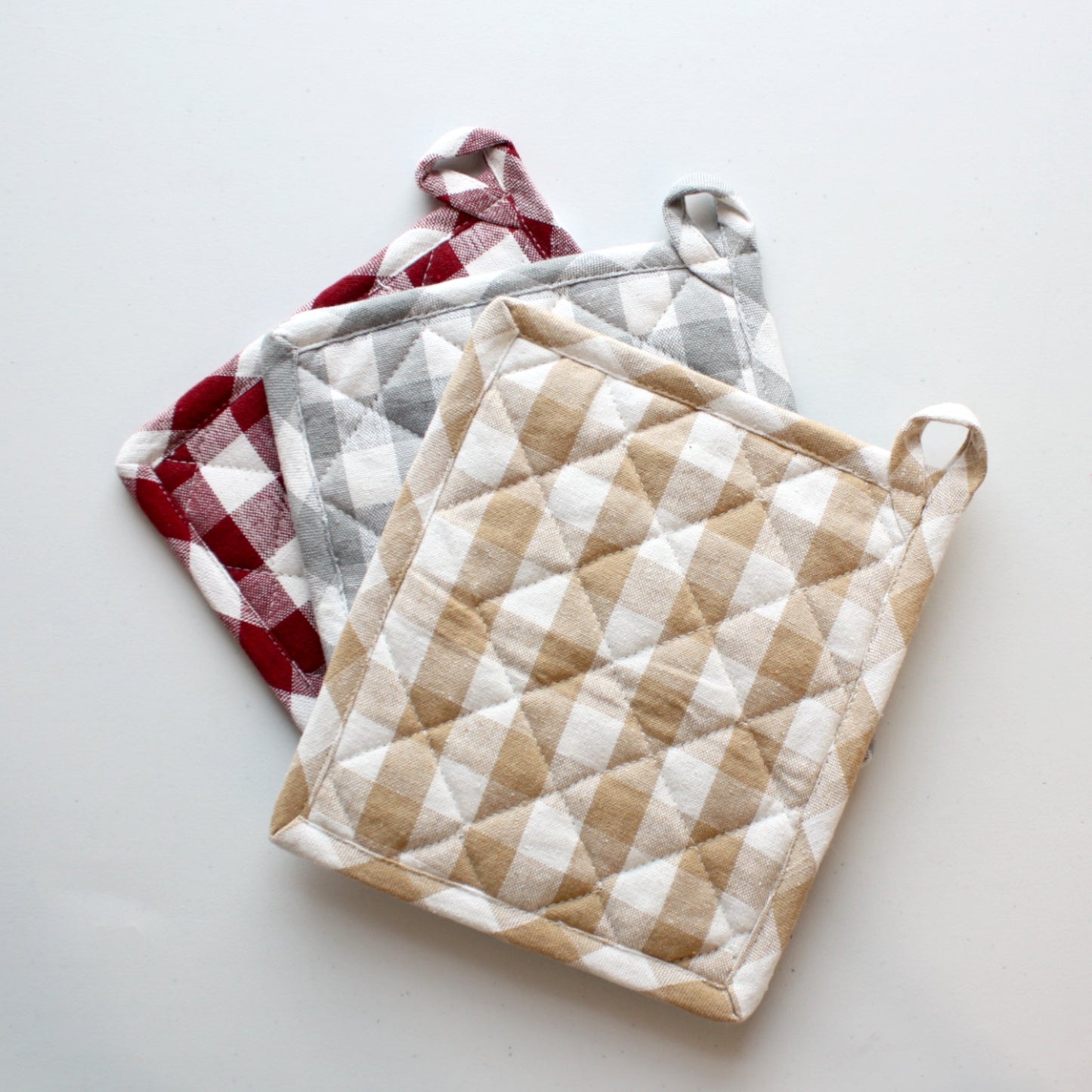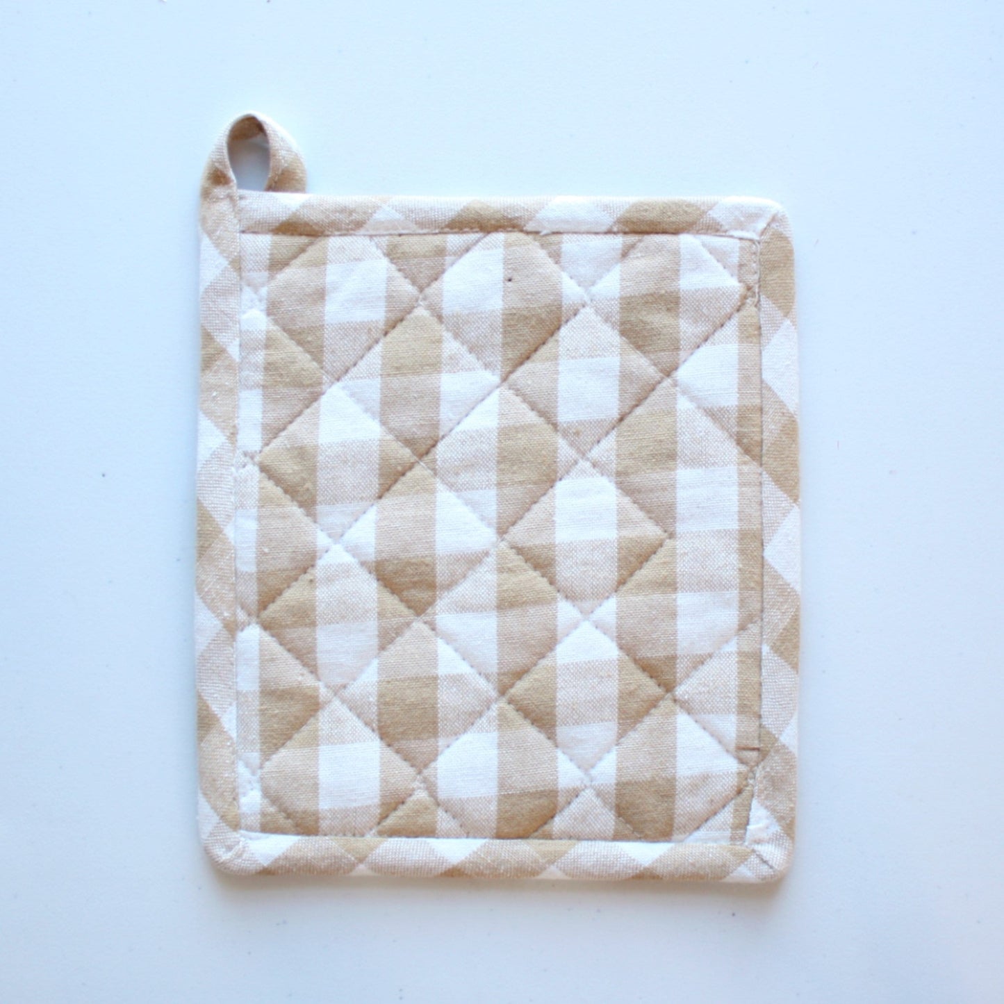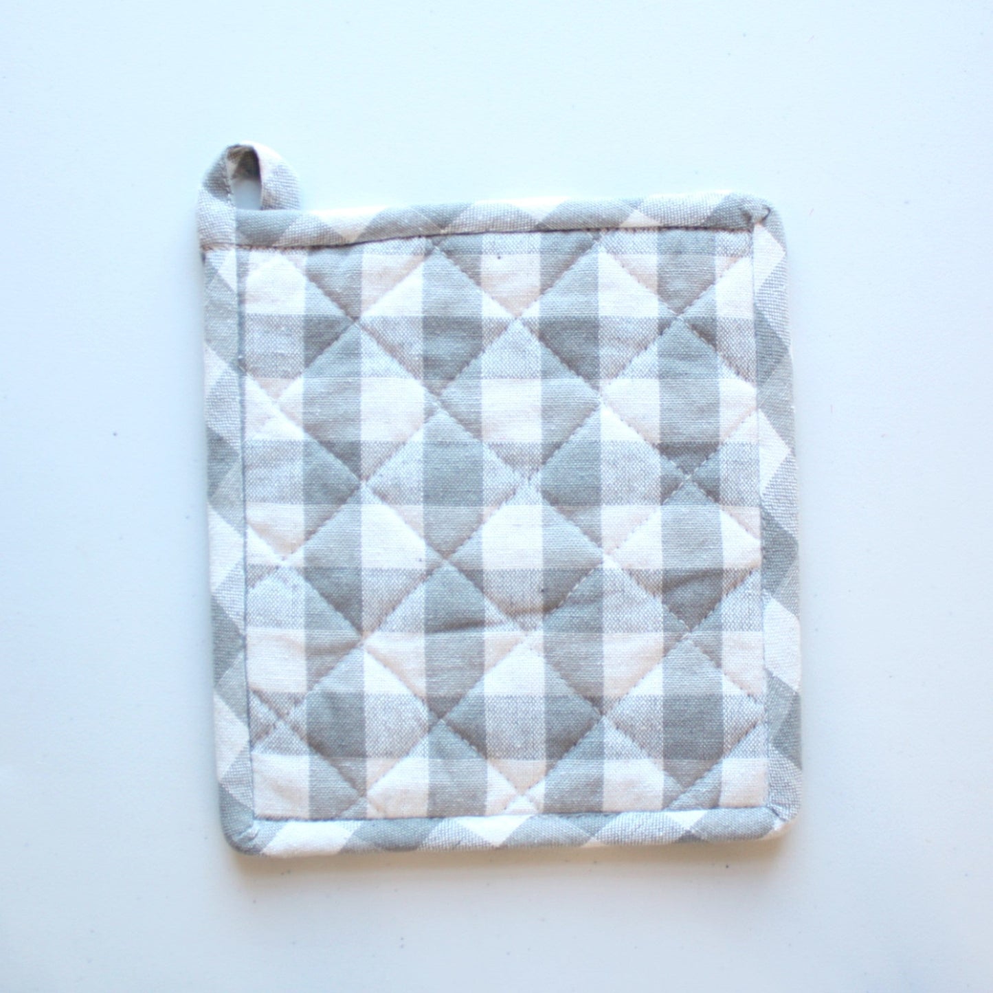 This Buffalo Bliss Handmade Potholder is where style and functionality unite! Crafted by skilled USA artisans, this chic checkered potholder, available in gray or beige, is a game-changer for your kitchen.