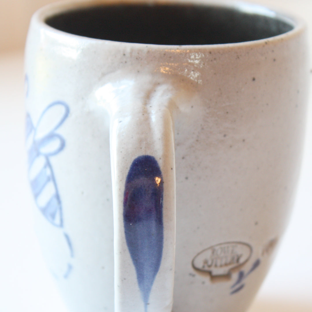 This Bumble Bee Hand Painted Pottery Mug is handmade by Artisan potters in Cambridge, Wisconsin. This stoneware mug is painted with an adorable flying bumble bee.