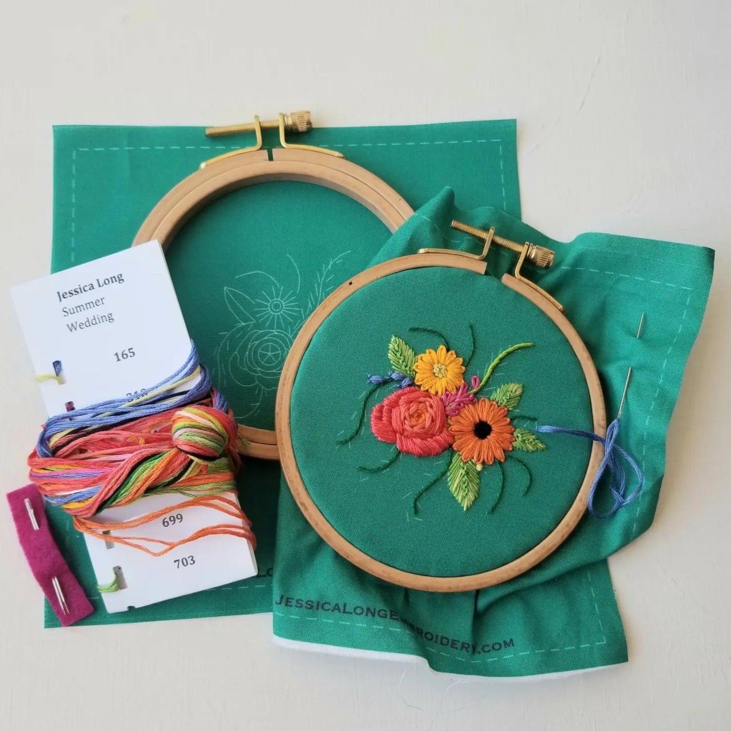 This happy craft kit features colorful flowers and explores fun combinations of hand embroidery stitches. New crafters will enjoy the hour long online video tutorial as they create a summery piece of hoop art they can keep or gift to a friend.