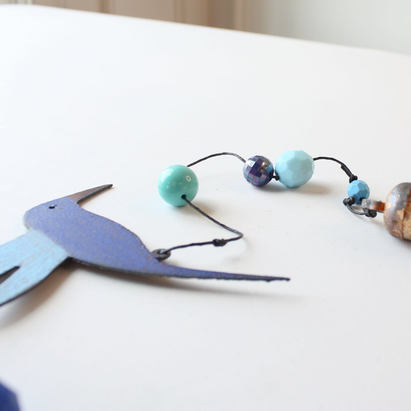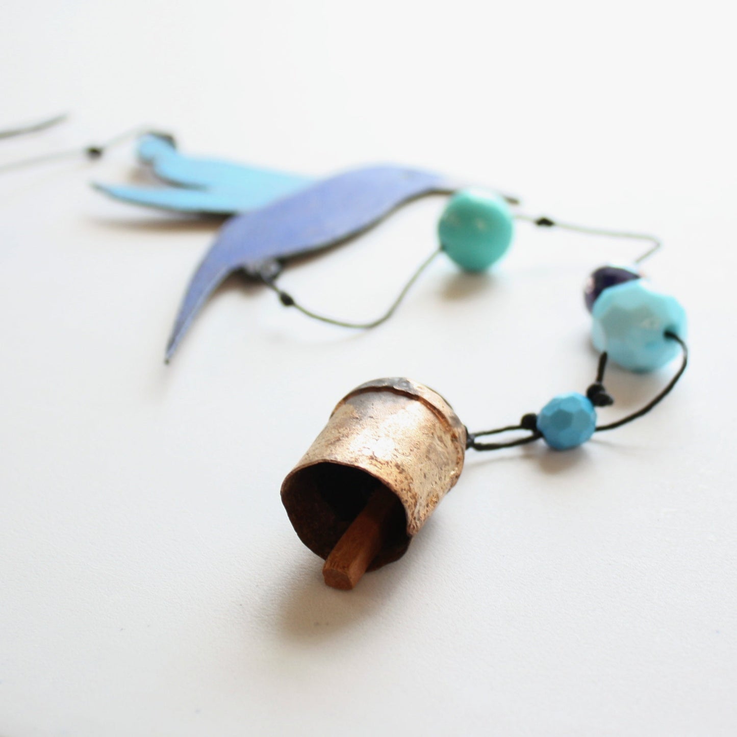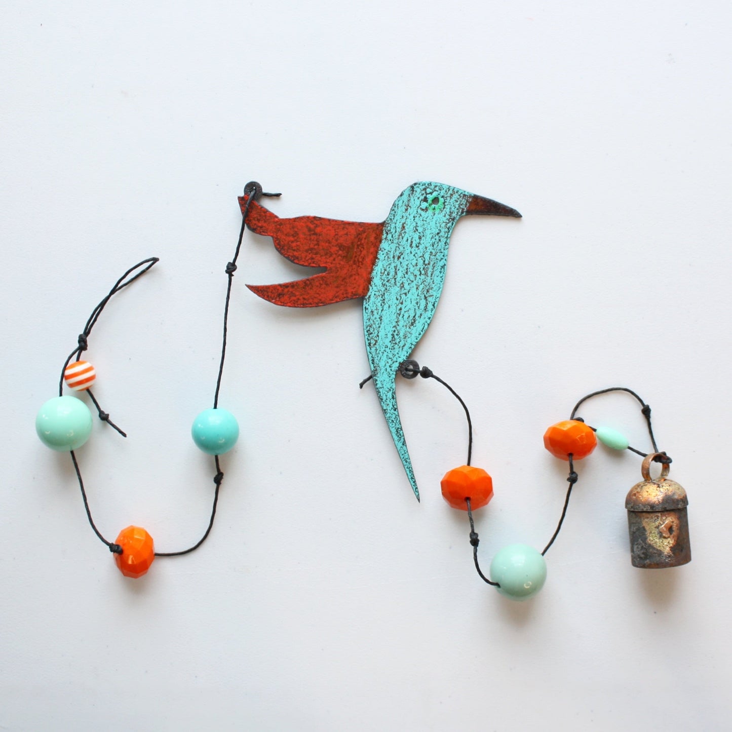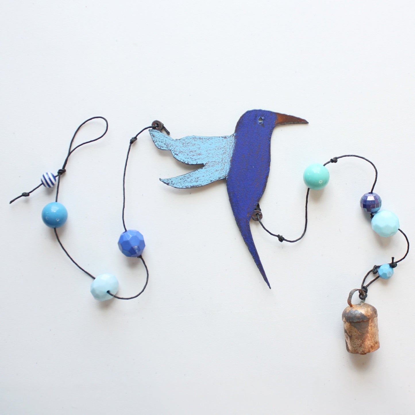 Picture this: a delicate metal hummingbird dancing in the breeze, adorned with an array of colorful beads and a bell that tinkles like tiny whispers of music. Each chime is a unique expression of art, bursting with personality and crafted with recycled metals sourced from all over the USA.