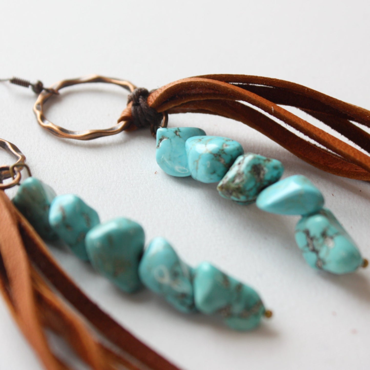 Leather Fringe Earrings with Turquoise Chunks