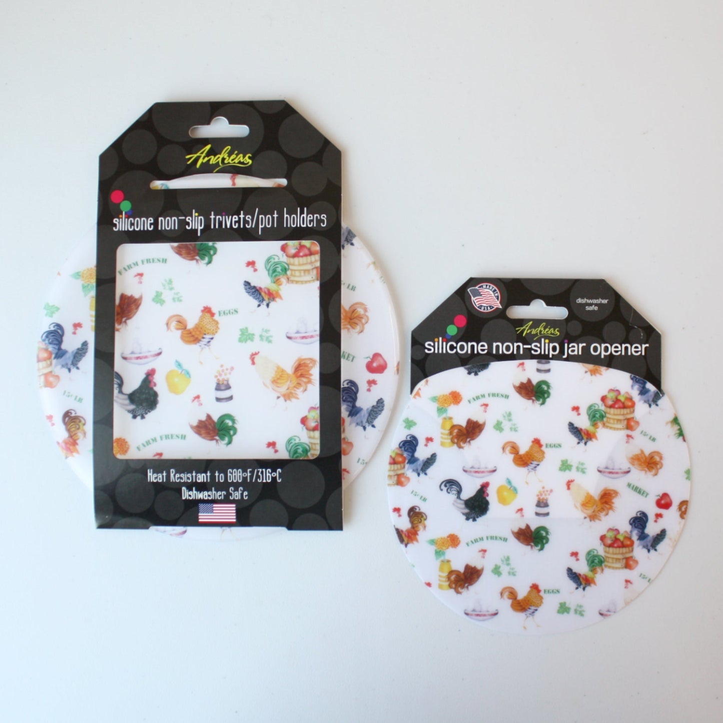 These Trivets and Jar Openers are made in a variety of charming styles by a great American small business in Tamaqua, PA. They're made of durable silicone and can withstand temperatures of up to 600 degrees and are dishwasher safe for easy cleaning.