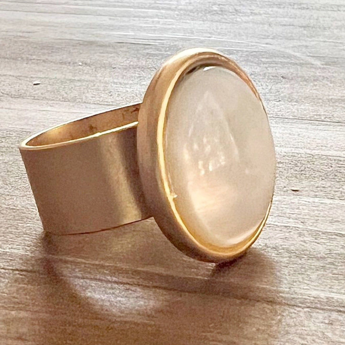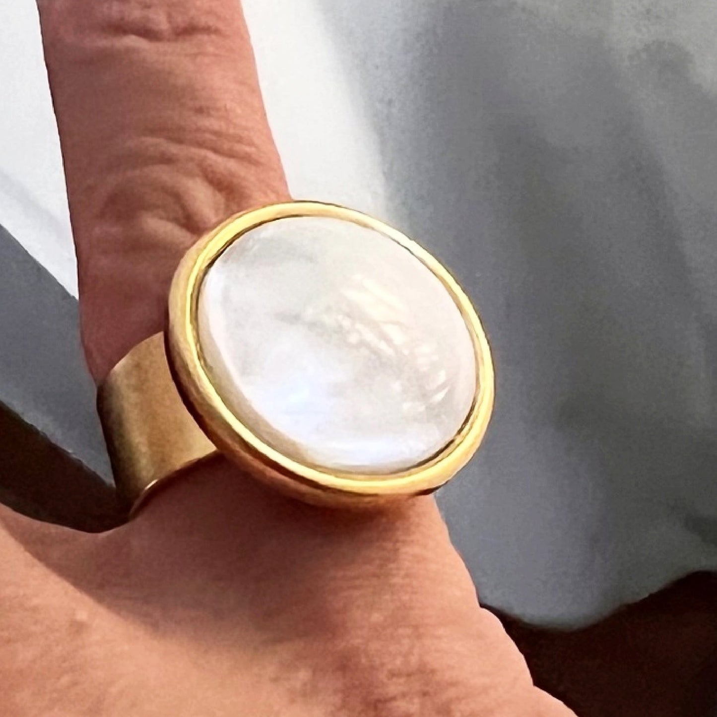 Elevate your style with a touch of artisanal flair and ethereal beauty. Whether you're dressing up for a special occasion or adding a dash of sophistication to your everyday ensemble, the "Iridescent" Hand Carved Trochus Shell Ring is the perfect accessory to showcase your unique personality and support local craftsmanship.