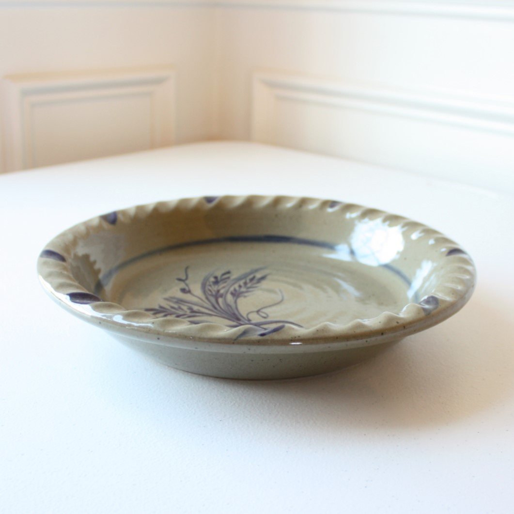 Wheat Pattern Hand Painted Pottery Pie Plate
