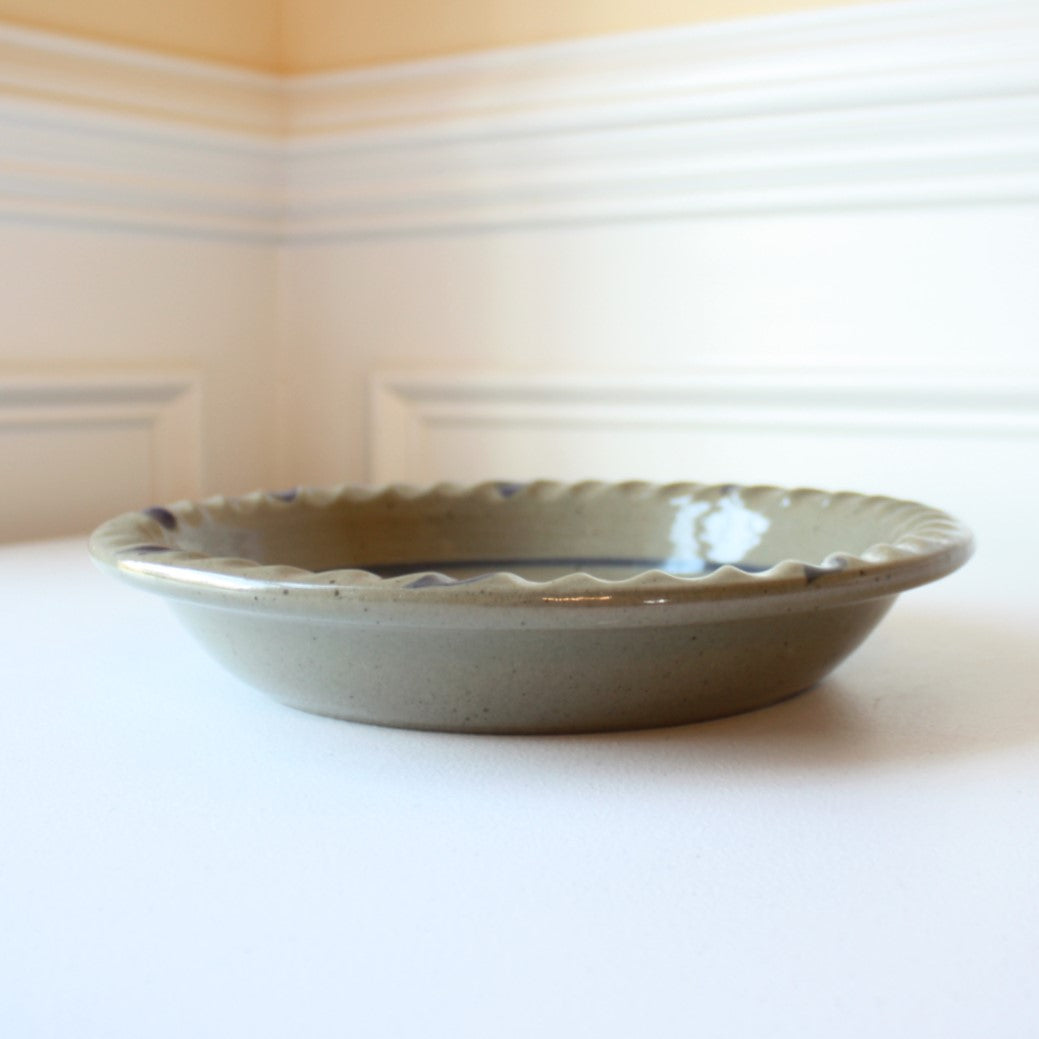 This Wheat Pattern Hand Painted Pottery Pie Plate is handmade by Artisan potters in Cambridge, Wisconsin. It's hand painted with a lovely wheat pattern. It's just the right size to hold your sweetest homemade holiday pies. This lovely piece adds charm to your kitchen in between meals.